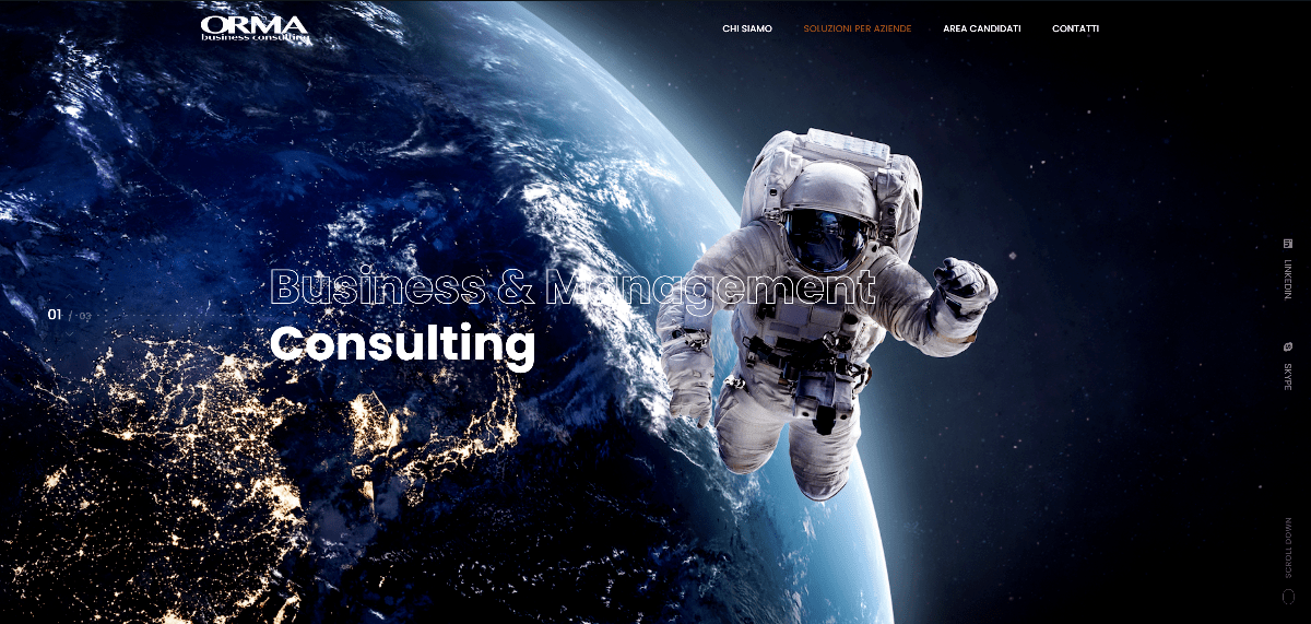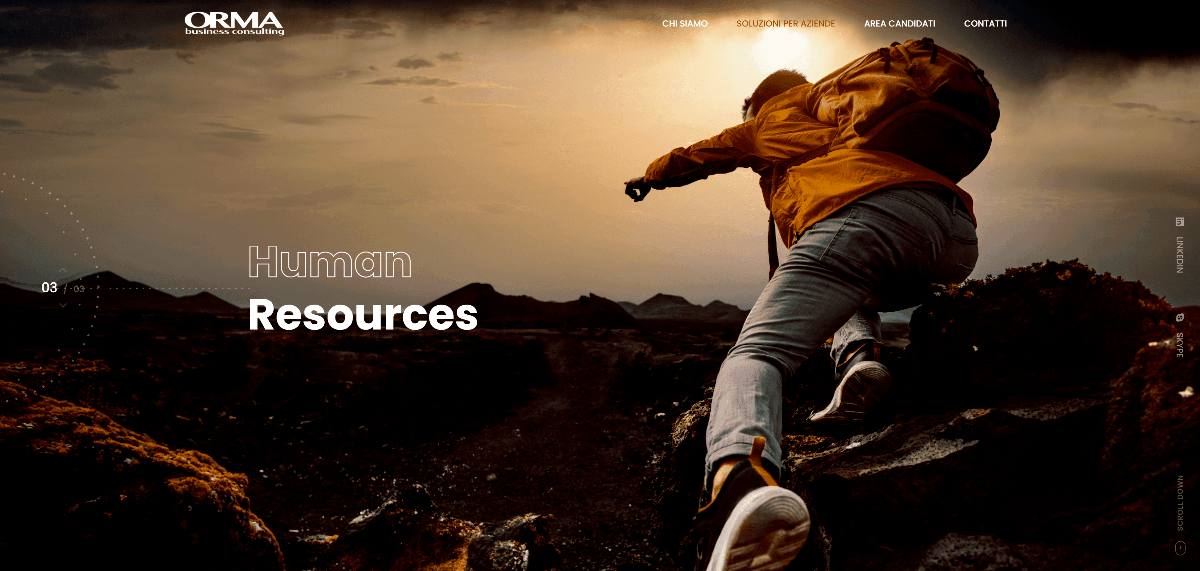Insieme a Orma Business Consulting abbiamo voluto creare un nuovo modo di comunicare. Abbiamo utilizzato immagini d’impatto con una proiezione sul futuro e sugli obiettivi, ma allo stesso tempo non ci siamo dimenticati di trasmettere i valori aziendali da loro acquisiti nel tempo. L’aspetto emozionale è infatti accolto in tutte le pagine con un definito progetto di web design.
